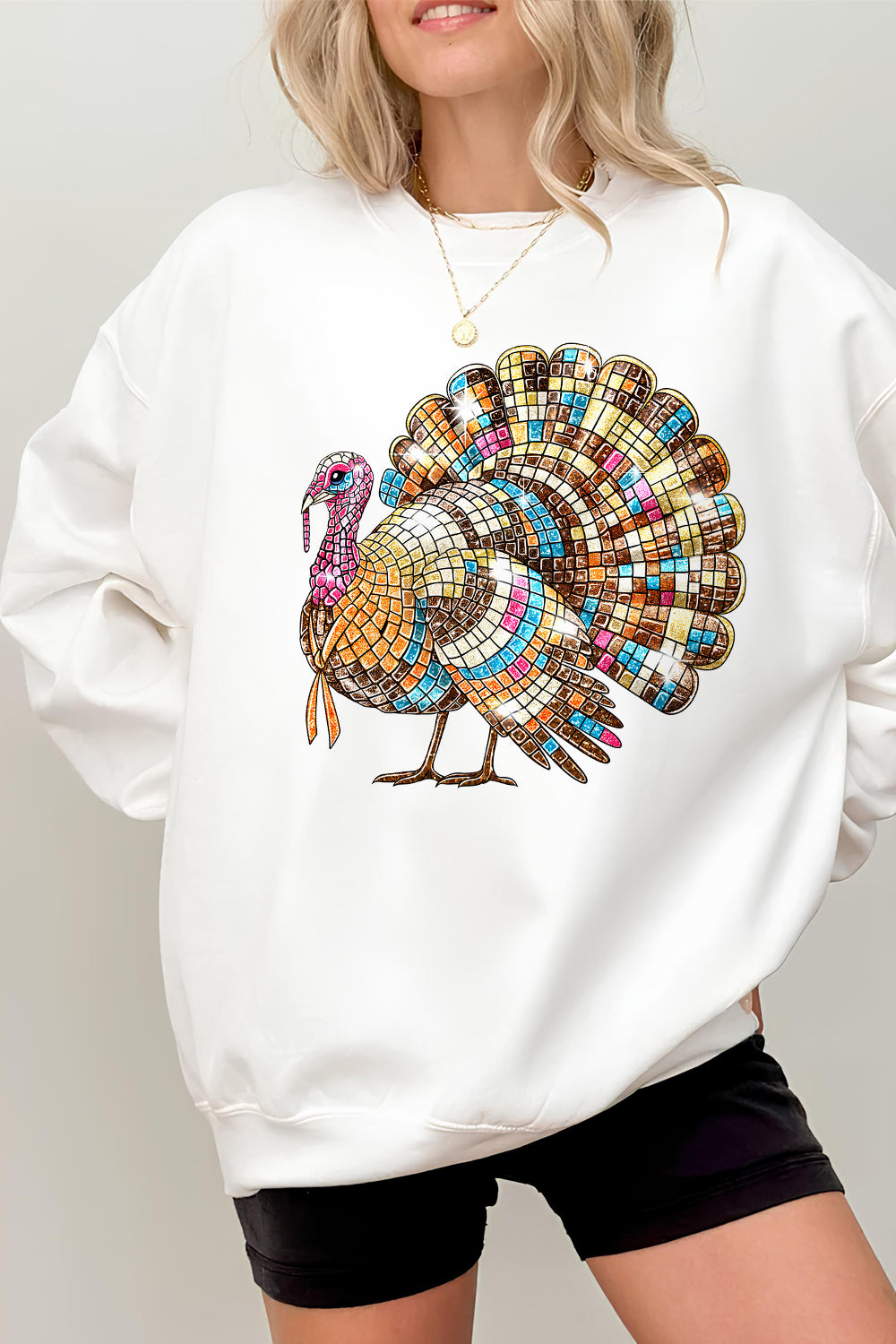 Thanksgiving Turkey Disco Ball Sweatshirt For Women