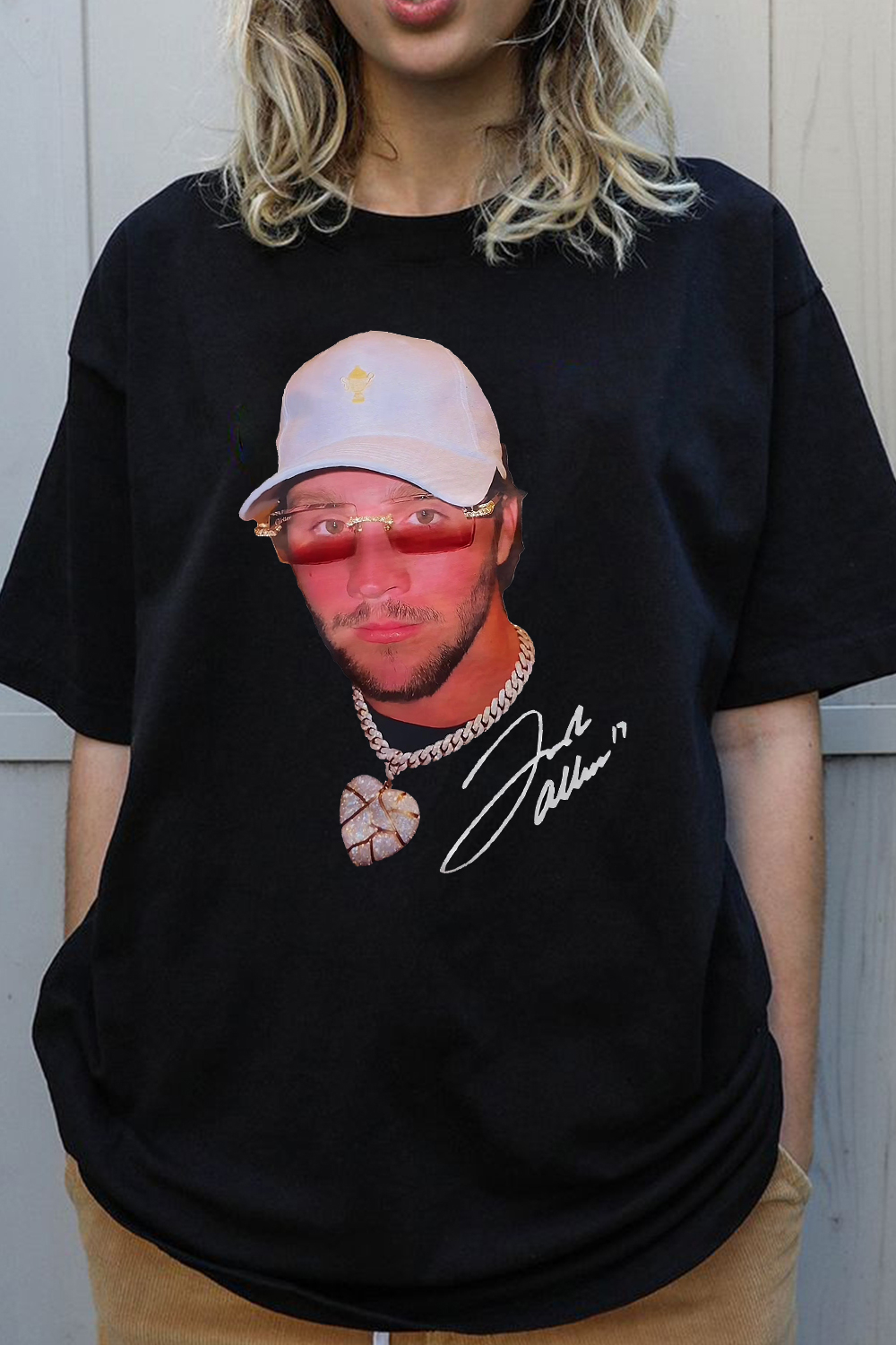 Josh Allen poster letter print short-sleeved T-shirt