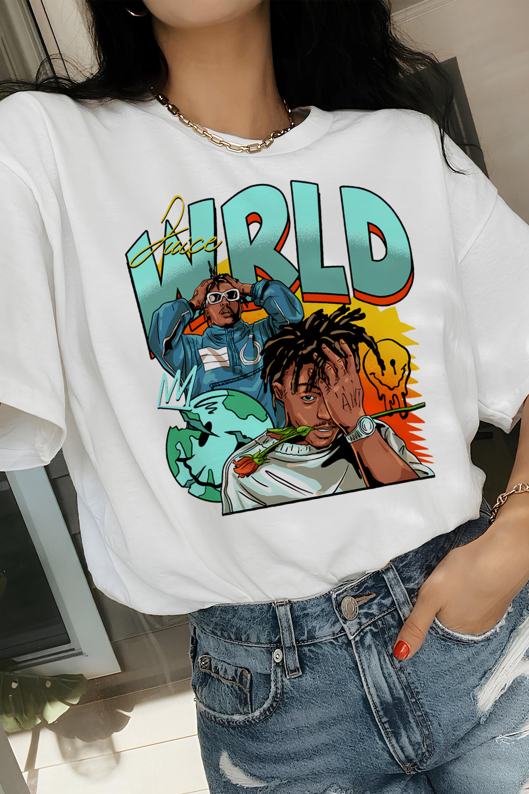 Juice Wrld Smiley Graphic Tee For Women