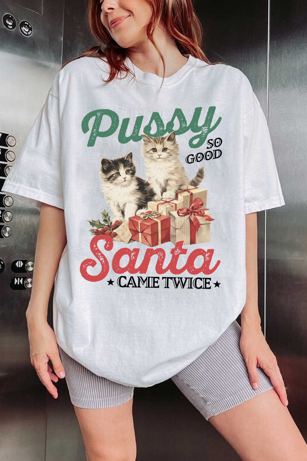 Raunchy Christmas Cat Funny Tee For Women