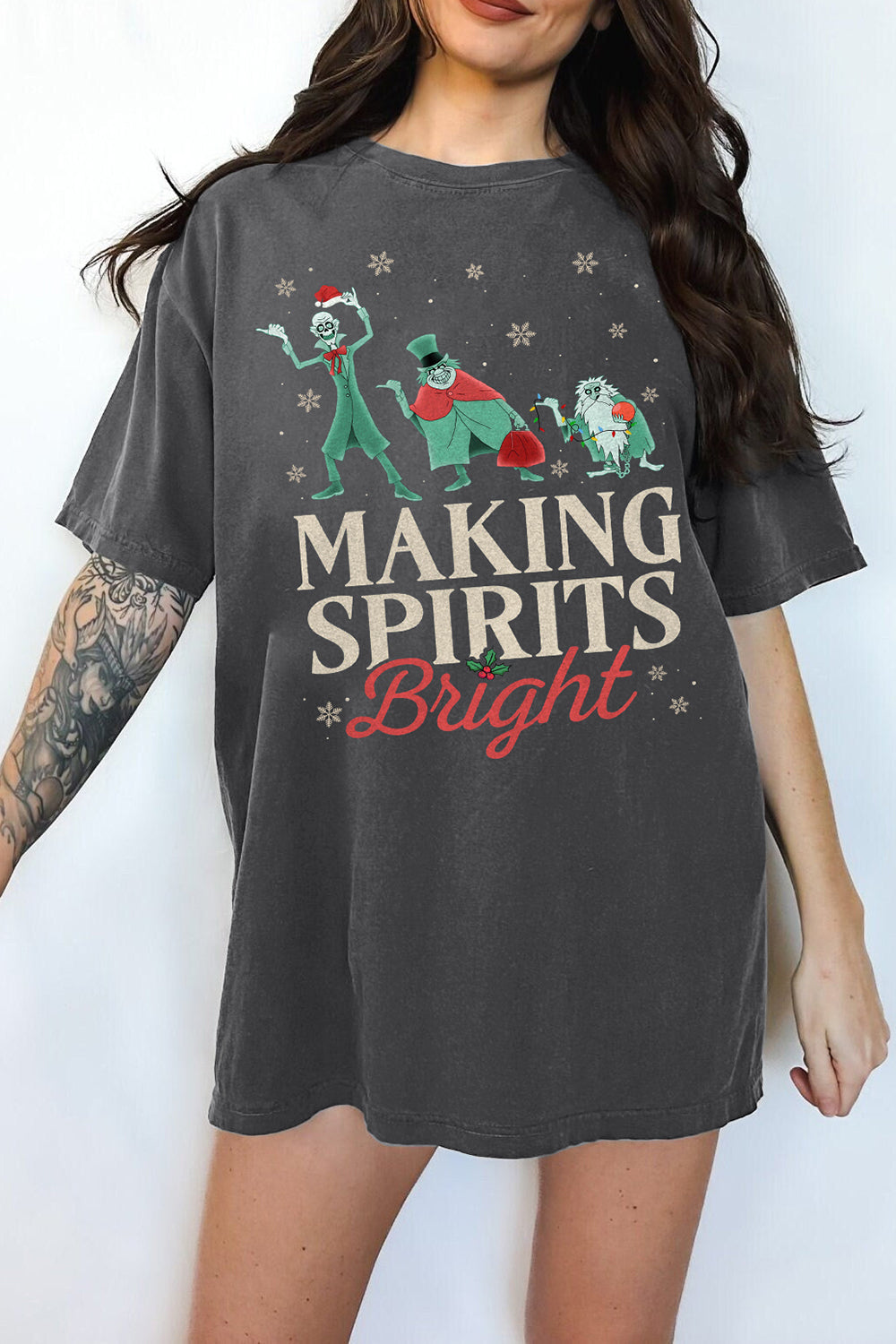 Making Spirits Bright Hitchhiking Ghosts Santa Hat Merry Tee For Women