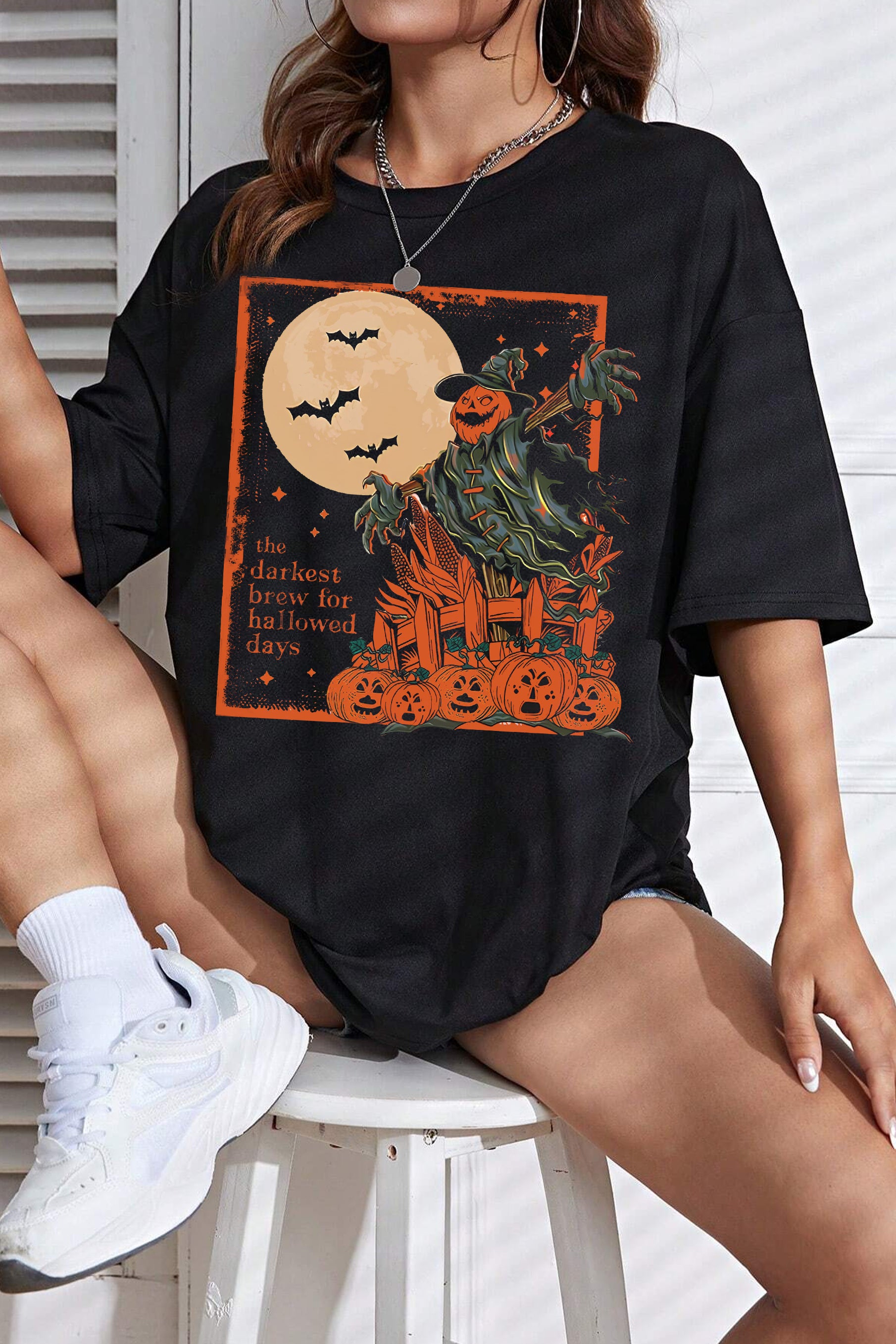 Halloween Scarecrow Vintage Horror Night Tee For Women