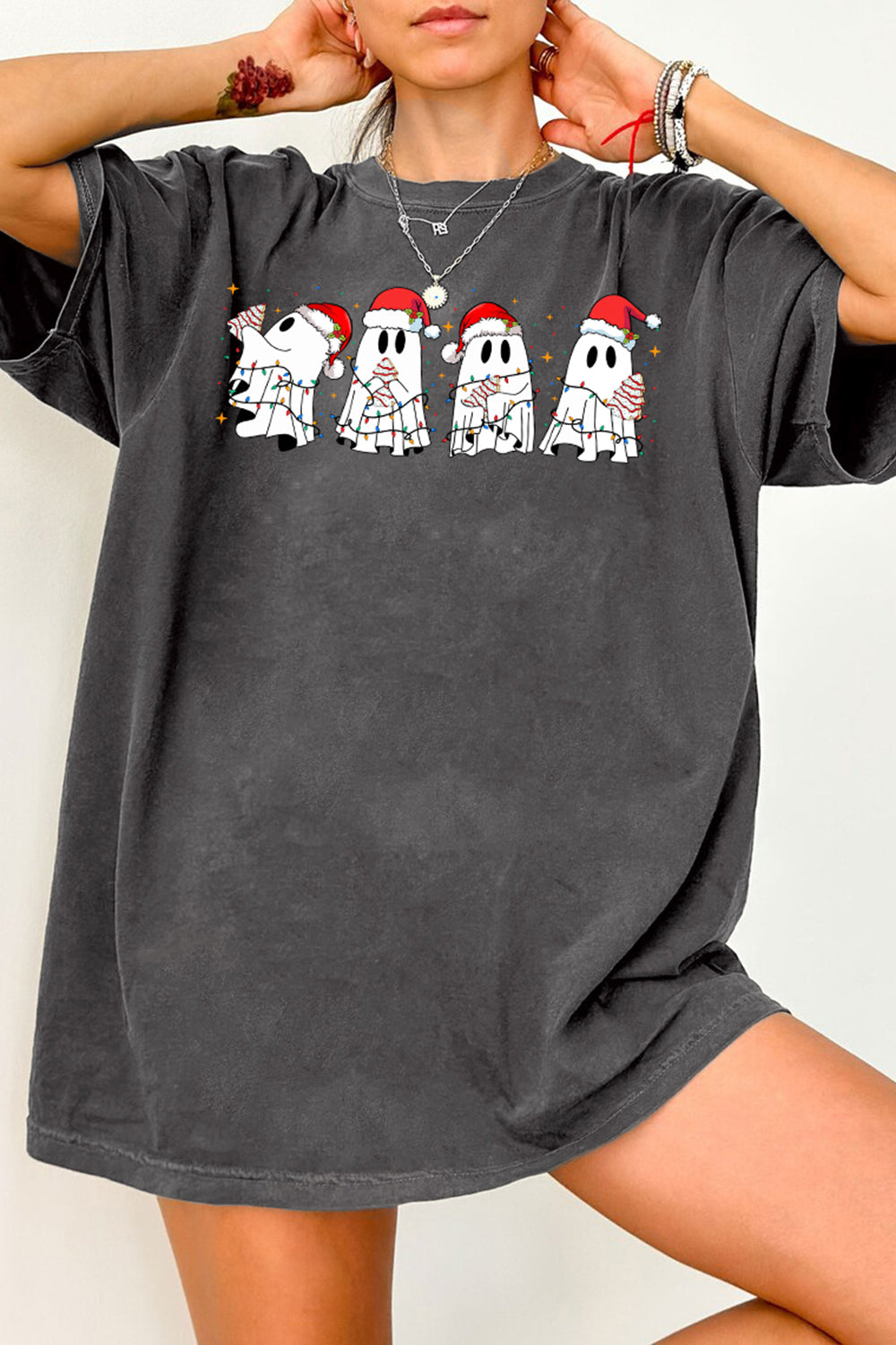 Cute Christmas Ghost Tree Cake Tee For Women