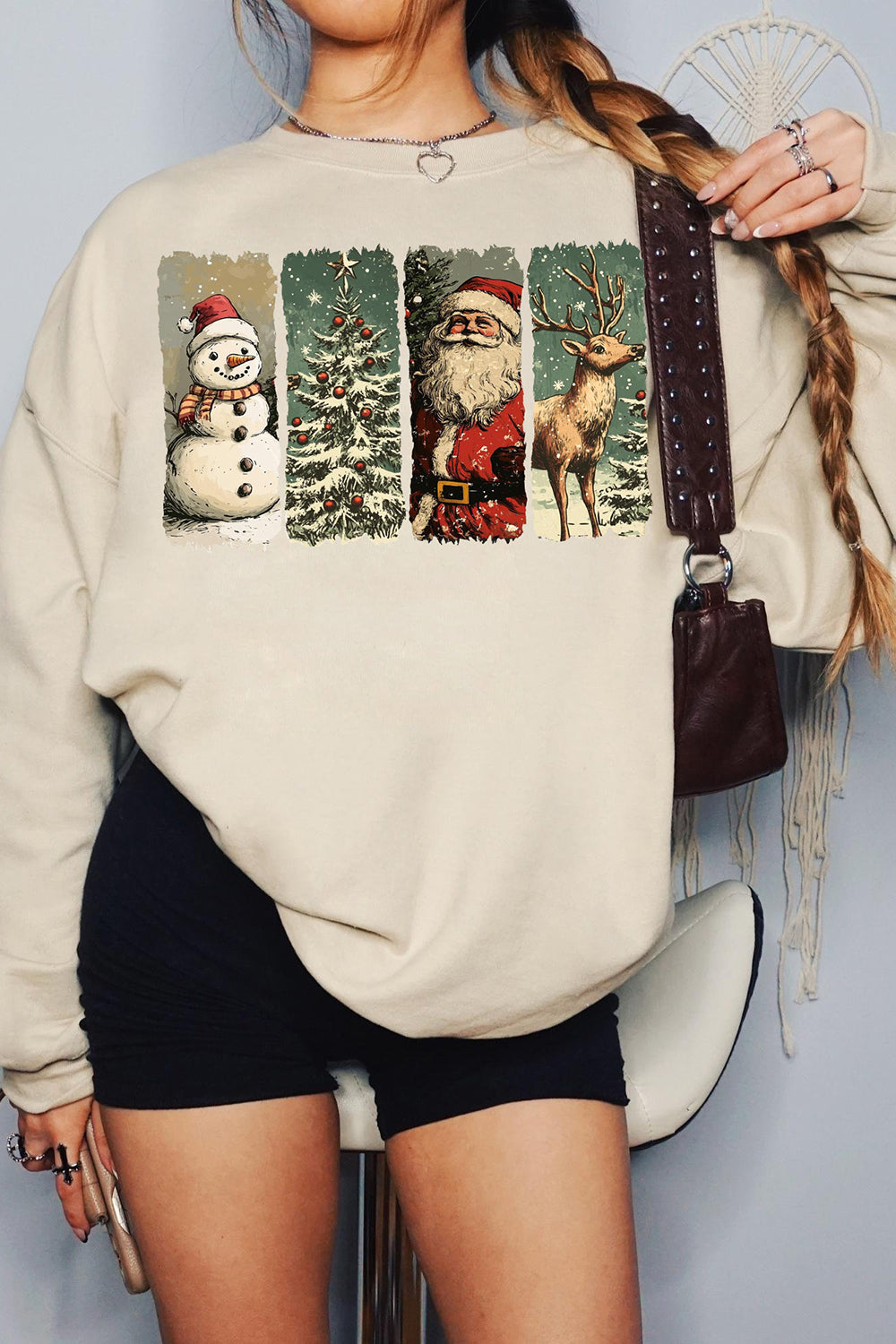 Retro Christmas Santa Claus Fleece Sweatshirt For Women