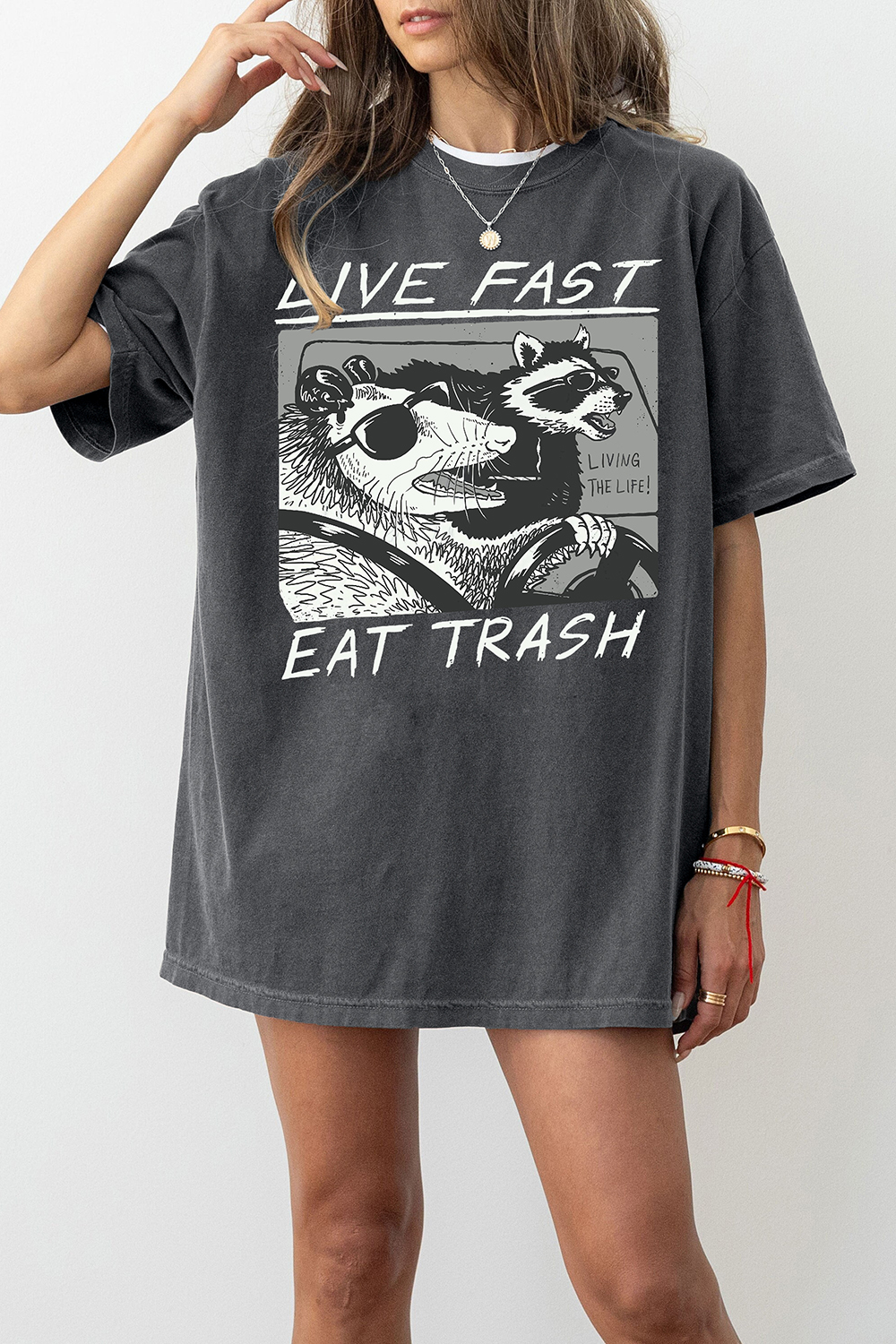 Vintage Opossum Live Fast Eat Trash 90s Style Graphic Tee For Women