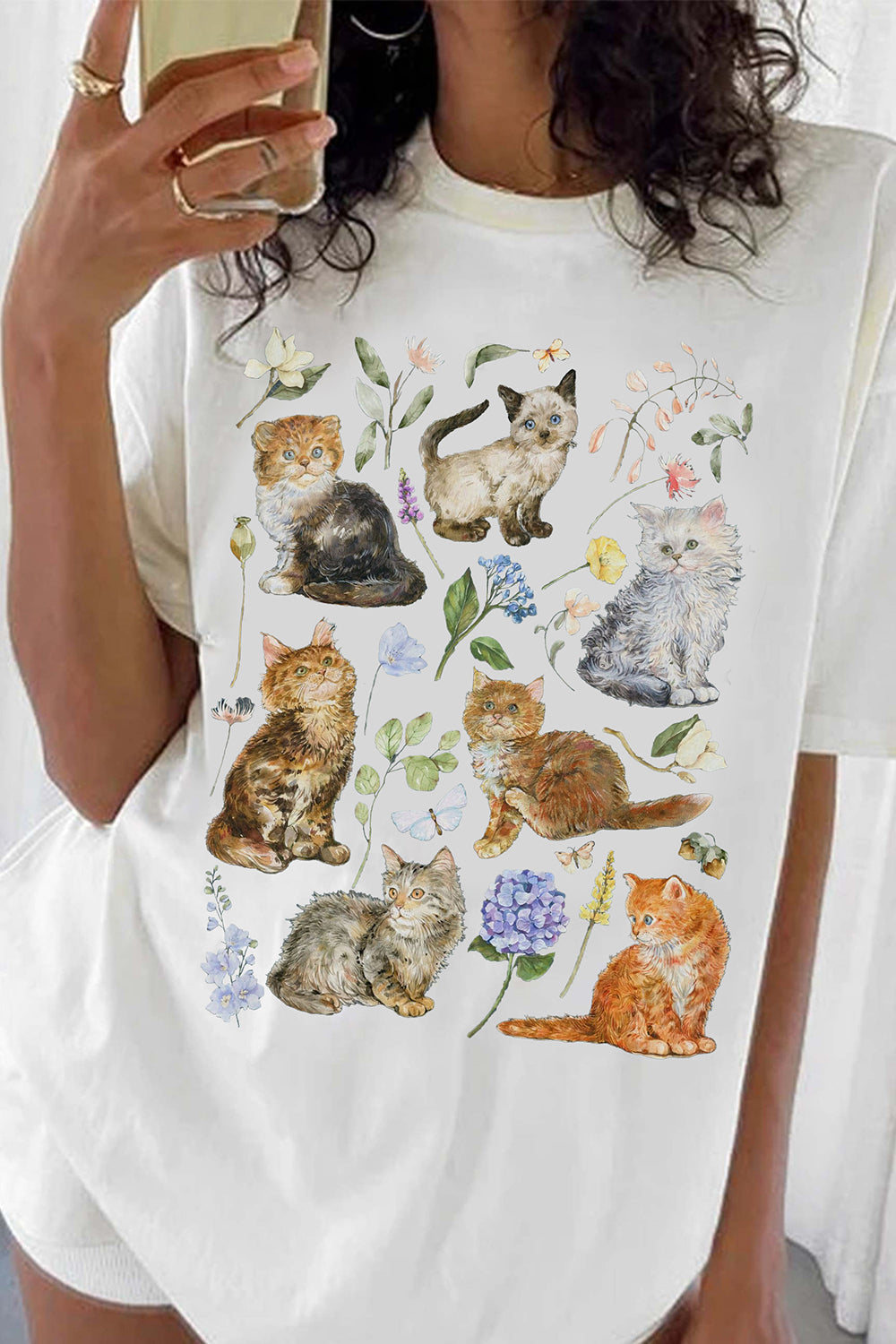 Wildflower Aesthetic Cat Tee For Women