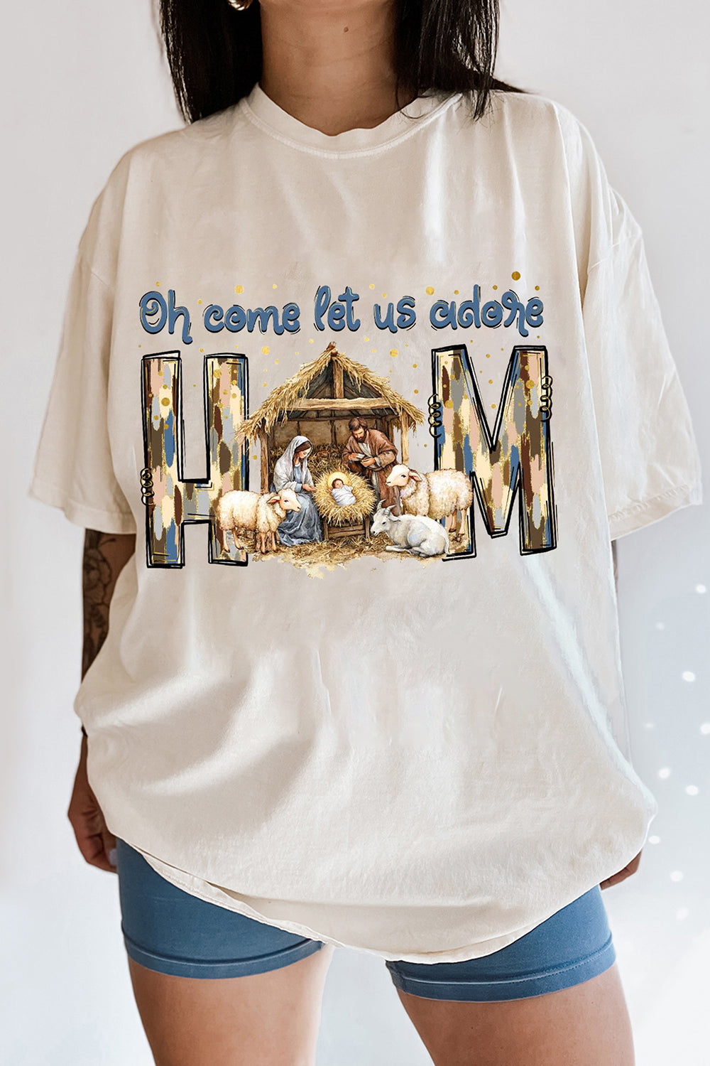 Oh Come Let Us Adore Him Christmas Jesus Tee For Women