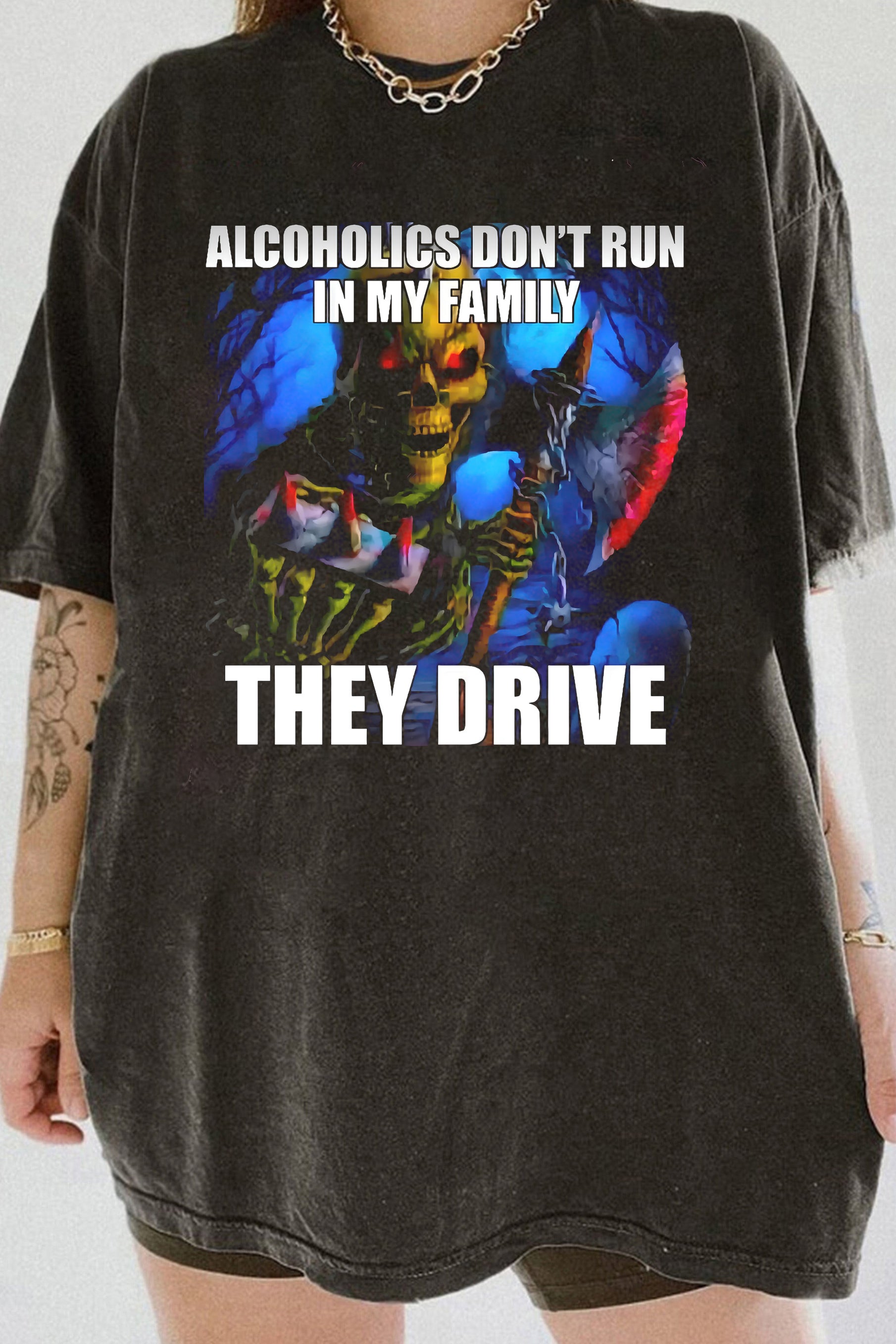 ALCOHOLICS DON'T RUN IN MY FAMILYTHEY DRIVE Tee For Women