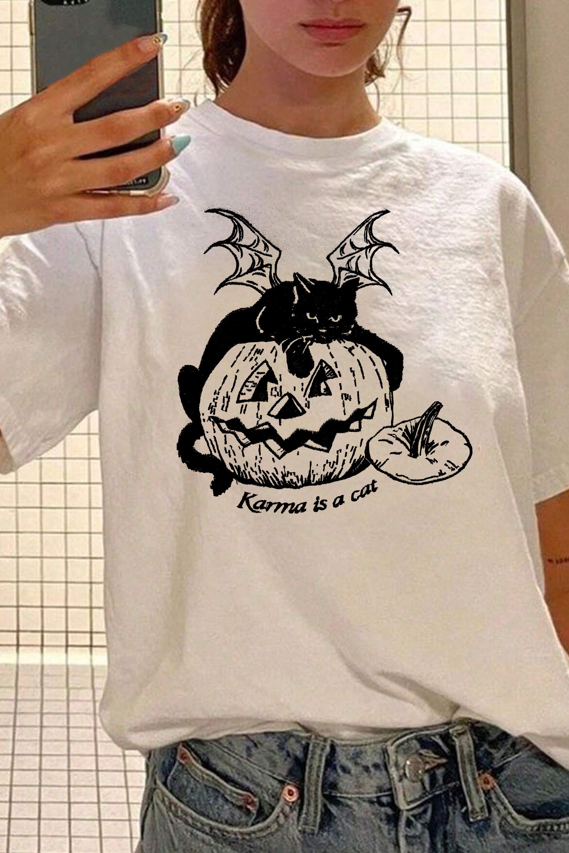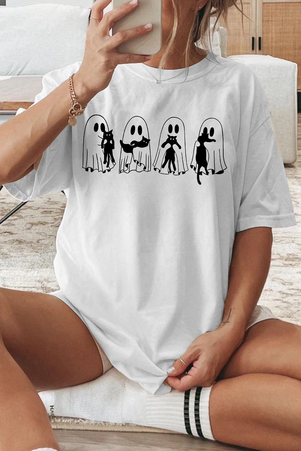 Ghosts with Cat Halloween Tee For Women