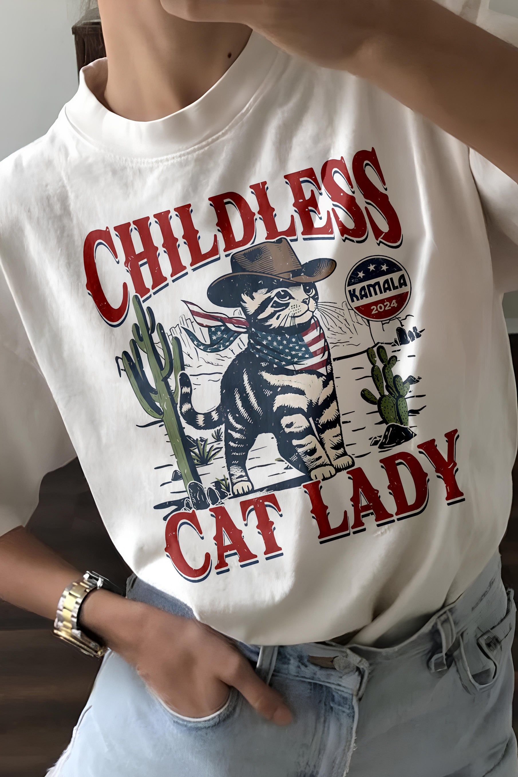 CHILDFREE CAT LADY Western Cowboy Cat Tee For Women