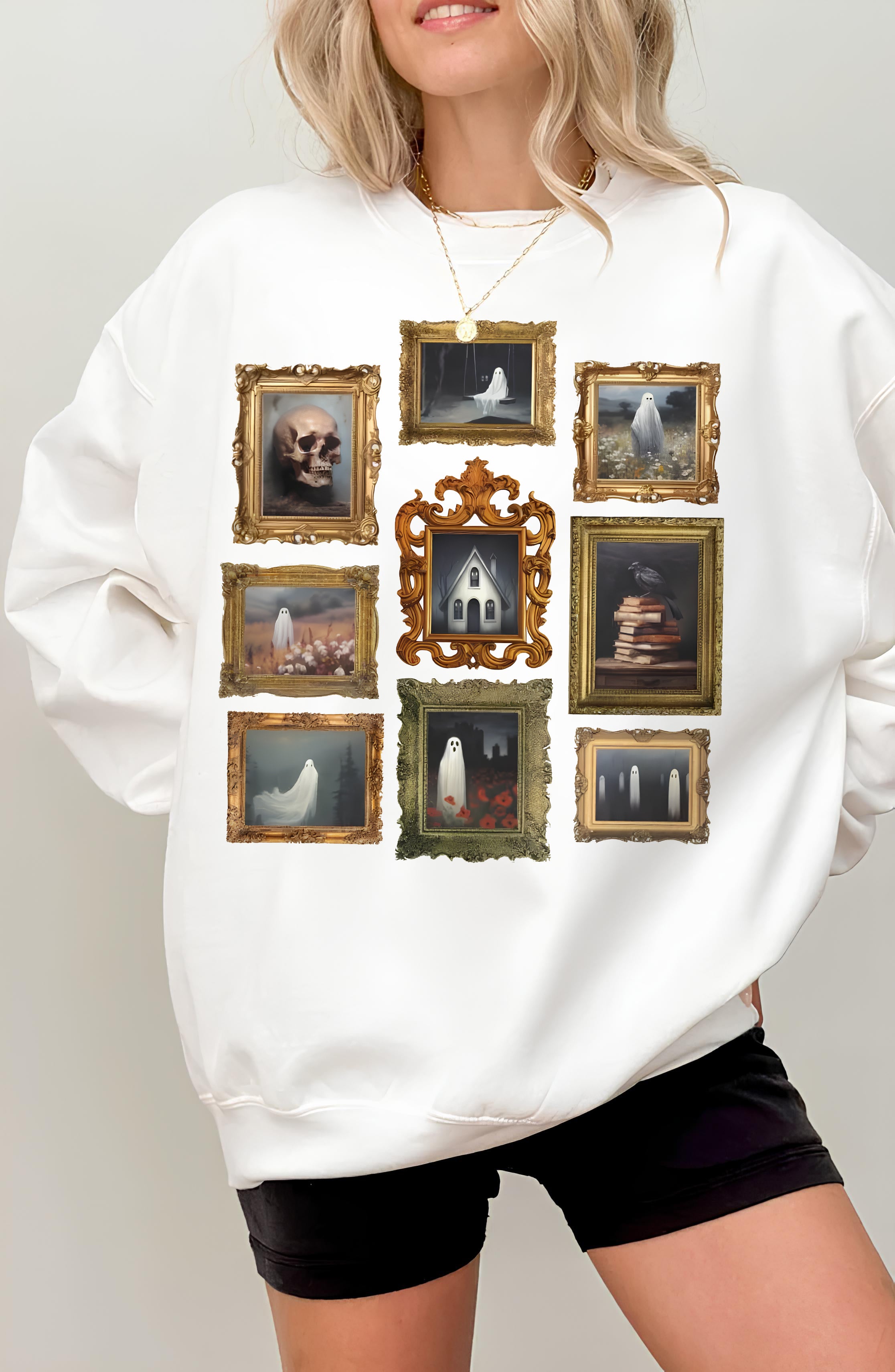 Halloween Ghost Frame Sweatshirt For Women