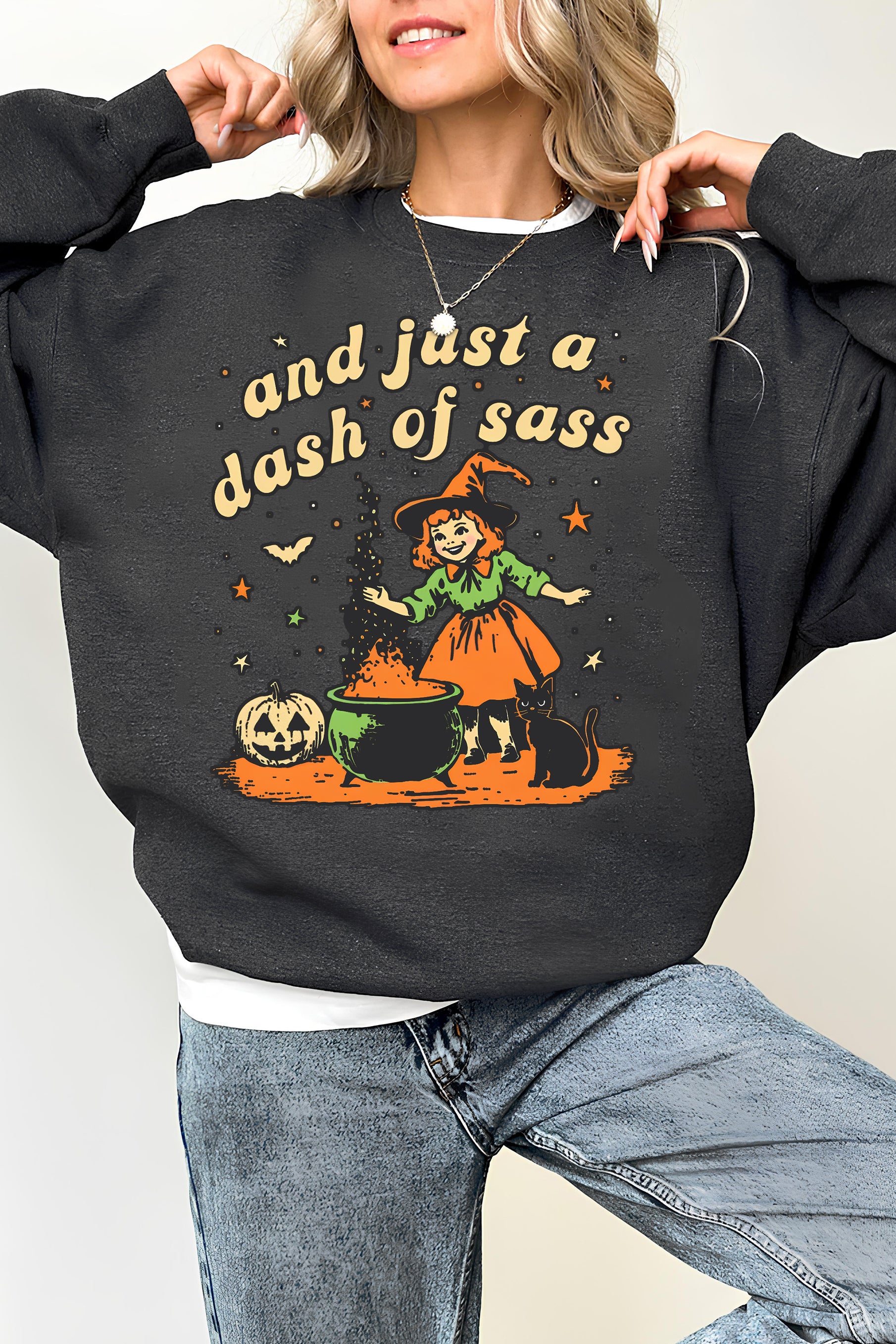And Just A Dash Of Sass Retro Funny Halloween Sweatshirt For Women