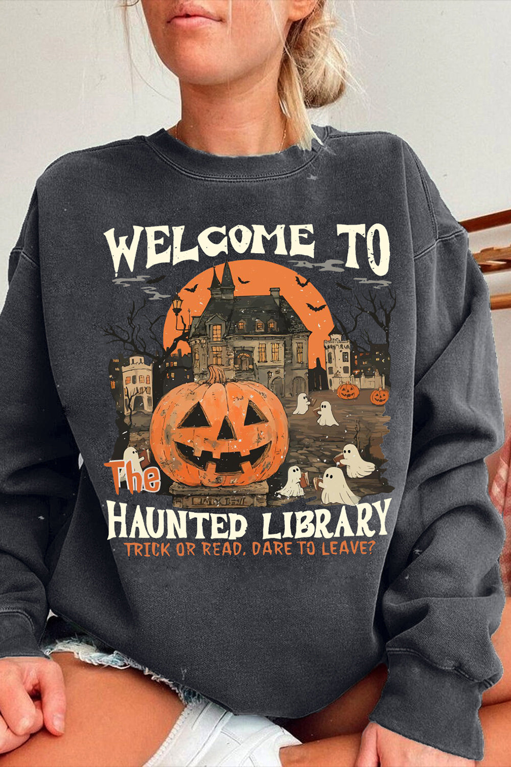 Haunted Library Funny Halloween Bookish Sweatshirt For Women