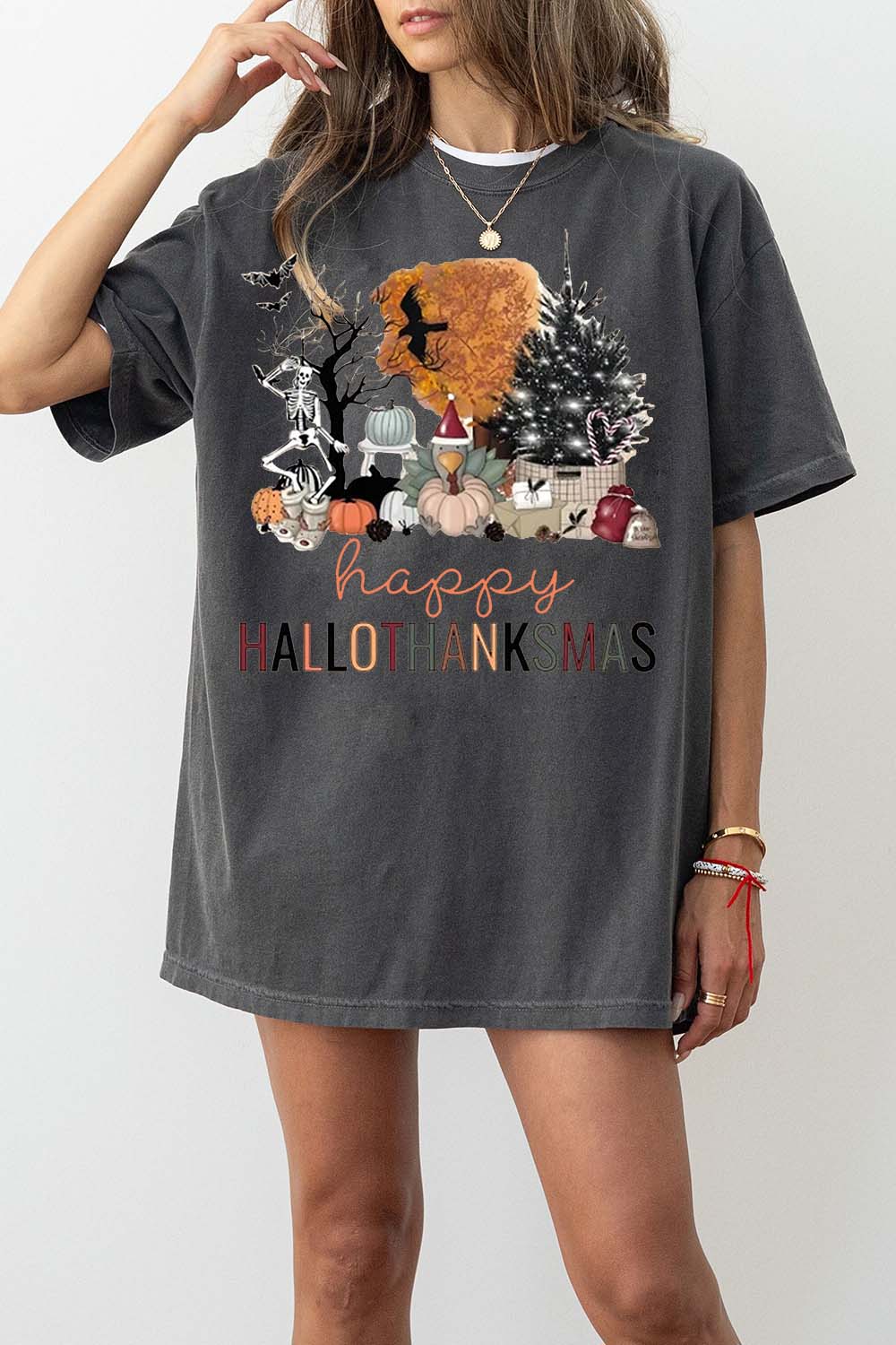 Happy Halloween Thanksgiving Christmas Shirt Autumn Tee For Women
