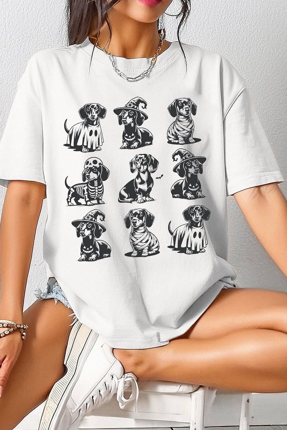 Halloween Witch Dogs Tee For Women
