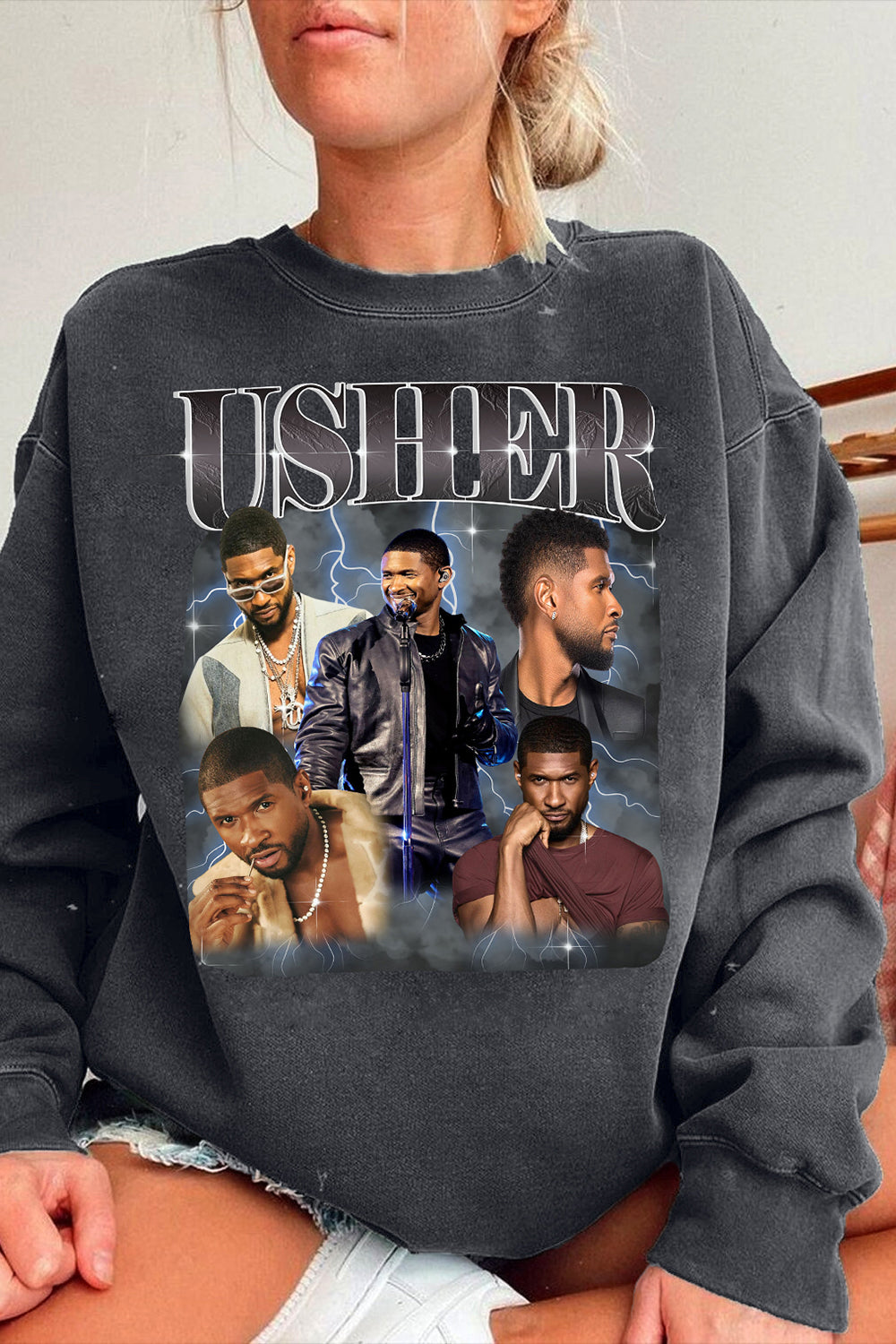 Usher Retro Graphic R&B Concert Sweatshirt For Women